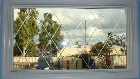 Our V-groove process incorporates an engraving process on sandblasted tempered glass or glue chip glass, which provides great privacy while allowing infiltration of light. The engraving technique is also available on clear tempered glass.